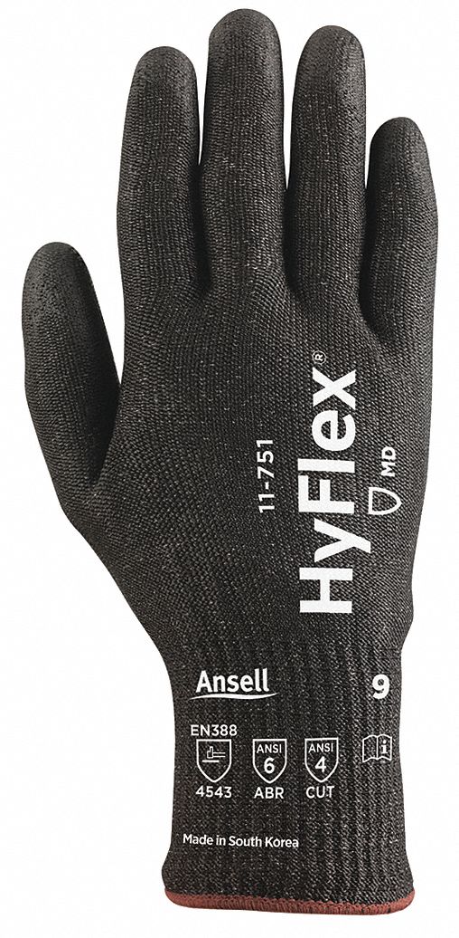 Hyflex Coated Gloves 2xl 11 Ansi Cut Level A4 Palm Dipped Polyurethane Sandy Black 1 Pr 52ep80 11 751 Grainger